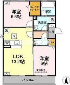 LDK 13.2帖 1室/洋室 6.6帖 1室/洋室 6.0帖 1室 - 向き